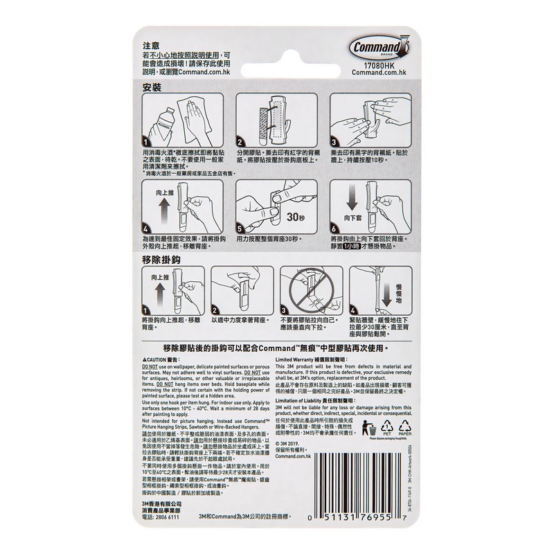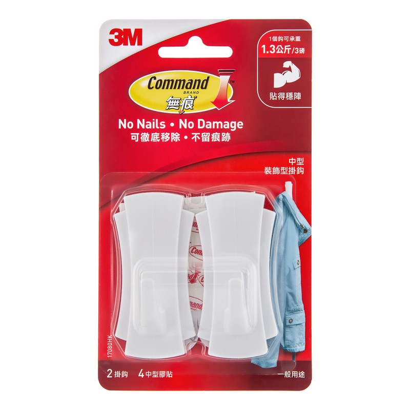 無痕 中型掛勾2'S3磅 1 PK